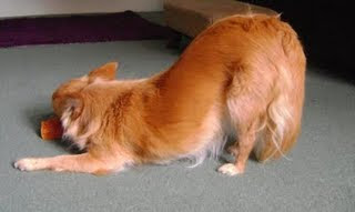 JD & Max - "Superb play bow from Shasta here - you can almost draw a straight line from the nose upwards to the tip of the tail! It's textbook stuff - Shasta is obviously a pro!"